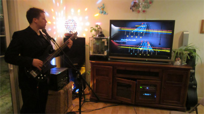 The Rocksmith system is designed for teaching guitar. We also incorporate amplifiers, microphones, stage lighting, keyboards, drums... It's like band karaoke with real instruments!